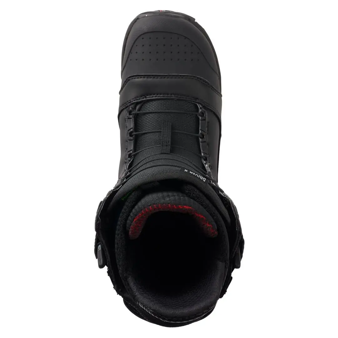 De Burton Driver X staat bekend als één van de meest responsieve boots op de markt en is ook de meest stijve snowboardschoen van Burton, maar wel met een goede comfort en demping ondanks de stijfheid. Deze boot is voornamelijk bedoeld voor de sterke zware rijder, welke geen concessie wil doen aan grip tijdens het hiken en kracht tijdens de afdaling.